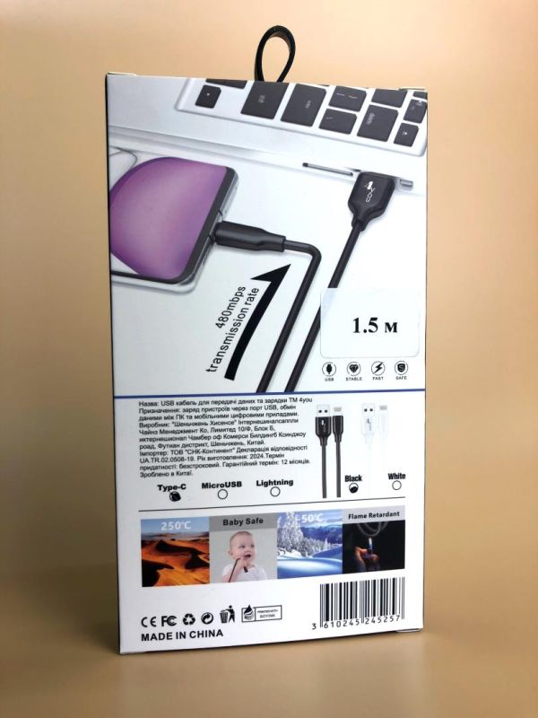 Usb-cable Micro USB 4you Dnister black (2.4A, Silicon Perfect) Нова упаковка!