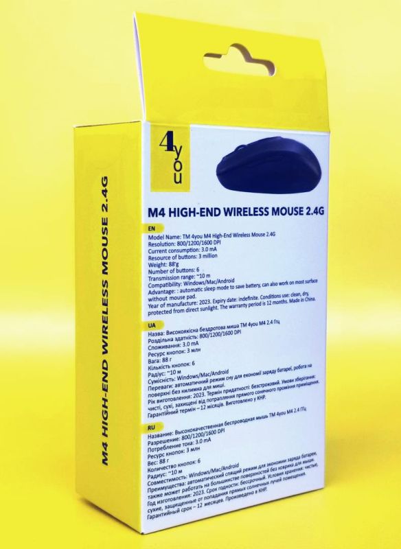 Миша бездротова 4you M4 black ( 2.4Ггц, 6кн, 800-1600DPI, 12мес гарантія )