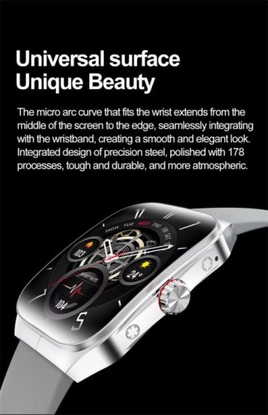 - Екран: вигнутий 1.95" AMOLED, роздільна здатність 410*502, сенсорний екран на весь екран
