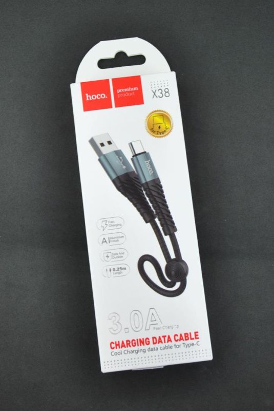 Usb-cable Type-C HOCO X38 Cool 3A 0.25m (круглий, тканевий, метал.коннект) Black