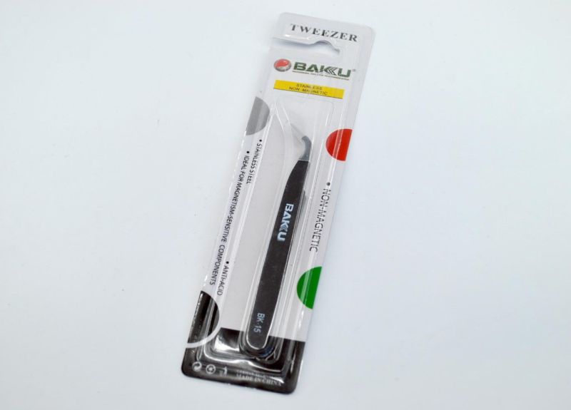 Пінцет вигнутий Baku BK-15 ESD з чорним антистатичним термопокриттям (W)