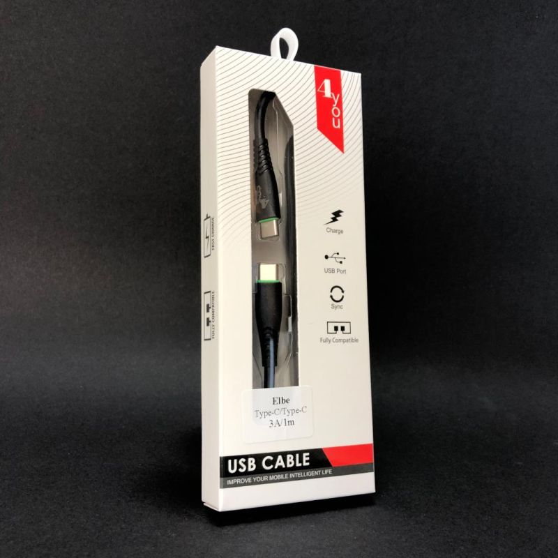 Cable Type-C/Type-C 4you Elbe (3A, silicon) Black (от10шт - 10%)