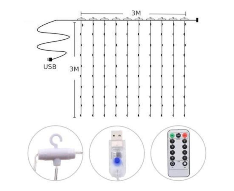 Гирлянда № 8 штора-роса 3*3м (USB/Пульт) Blue