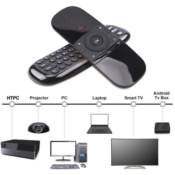 Пульт с мини-беспроводной клавиатурой подключается с помощью стабильной мощной радиочастотной технологии 2,4 ГГц. Просто подключите USB-приемник, и расстояние передачи может достигать 10 метров (394 дюйма). (2,4 ГГц означает беспроводное управление, не нужно целиться в экран — курсор можно перемещать в любом направлении).