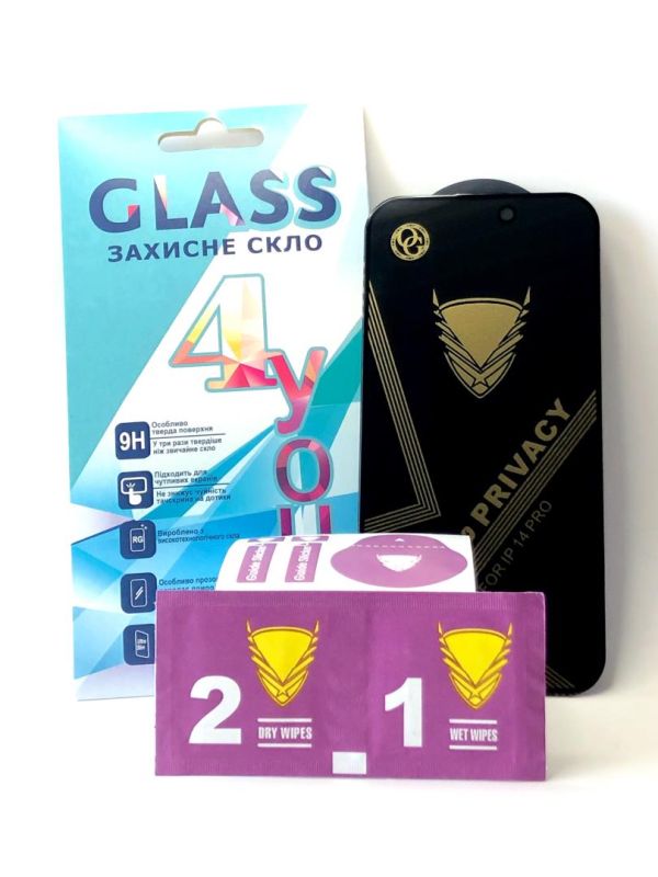 Защитное стекло iPhone 14Pro Golden Armor Privacy Black 4you