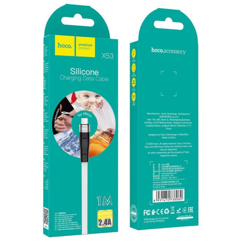 Usb-cable Micro USB HOCO X53 "Angel" 2,4A 1m (плоский) White