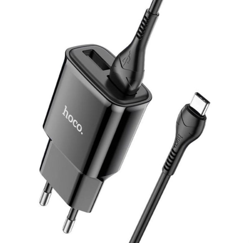 СЗУ-USB HOCO C88A 2.4A 2 Usb + кабель Type-C Black