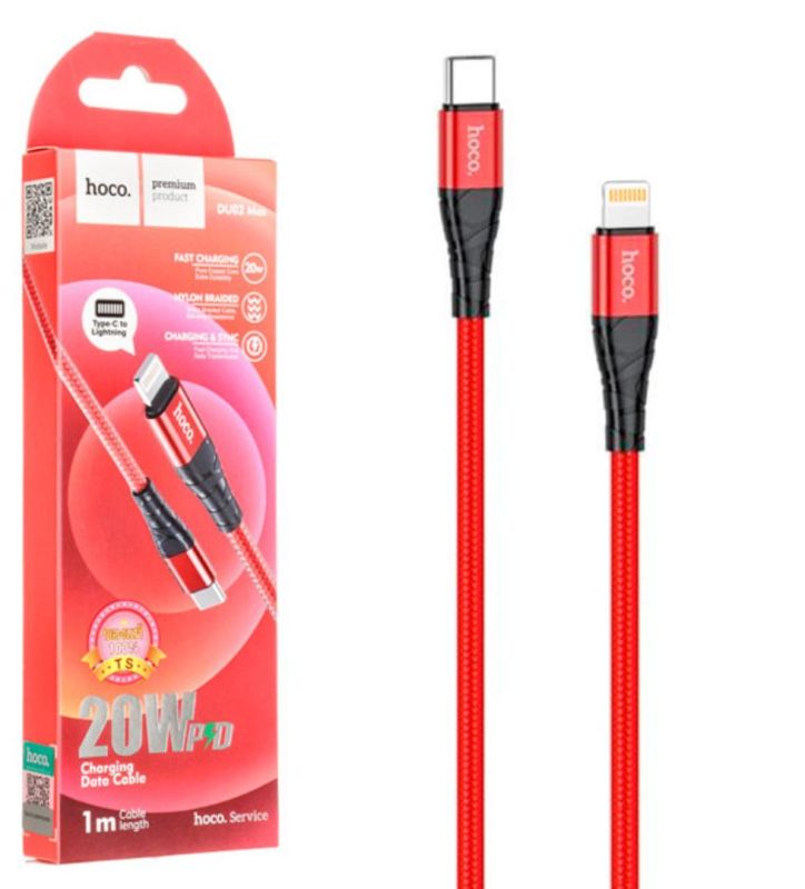Cable Type-C/iPhone 5 HOCO DU02 Max PD 20W 1m (круглый,тканевый,метал.коннект) Red