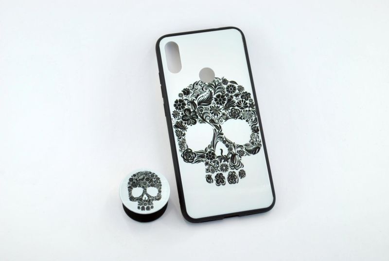 Чехол Xiaomi Redmi 7 Silicon Glass Print (M12) + popsocket "Акционная цена"