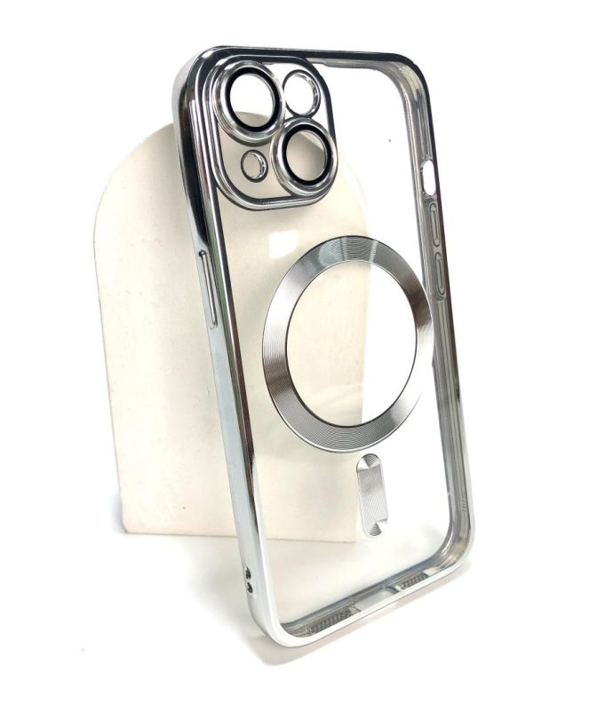 Чехол iPhone 15 Silicon Case Shining Full Camera with MagSafe Silver "Акционная цена"