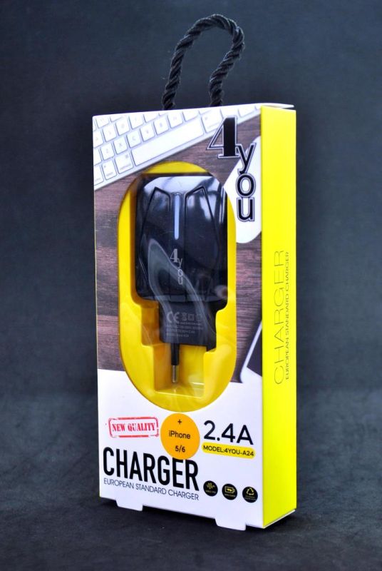 CЗУ 4you A24 (2.4A, Smart IC, Auto ID, улучшенная плата, 2USB, Led) black + iPhone