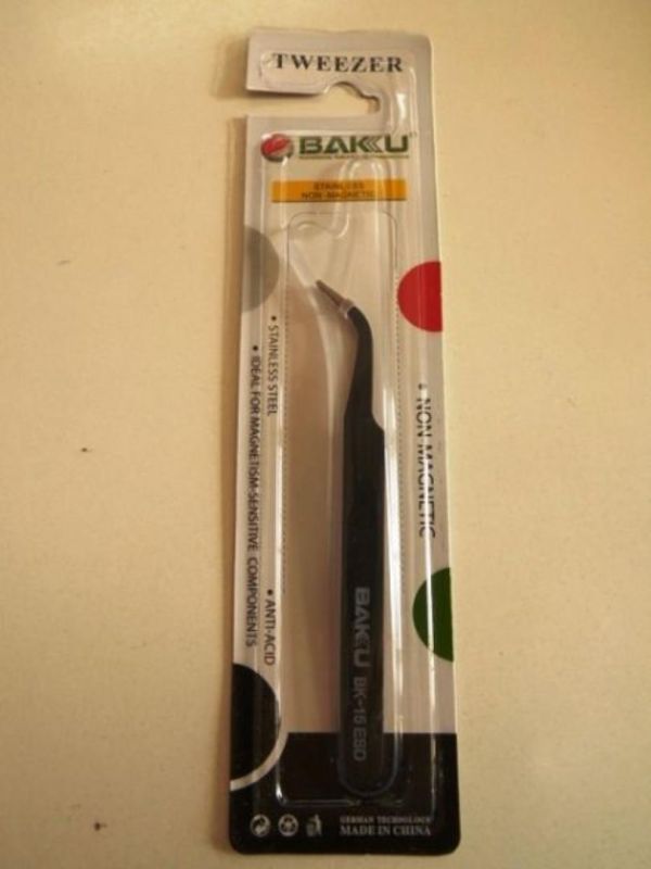 Пинцет изогнутый Baku BK-15 ESD с чёрным антистатическим термопокрытием (M)