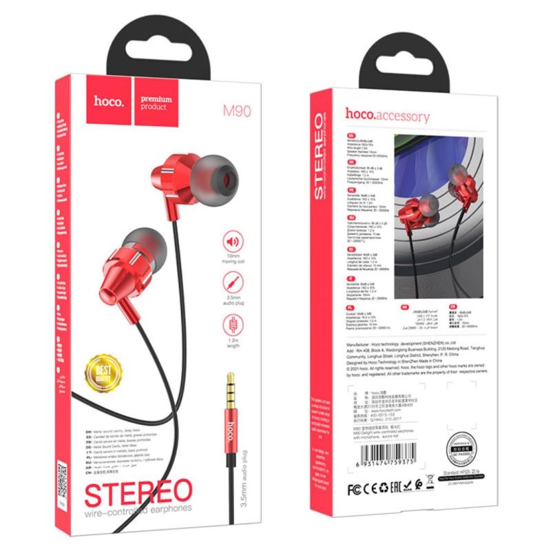 Гарнитура HOCO M90 (микрофон,круглый шнур) Red