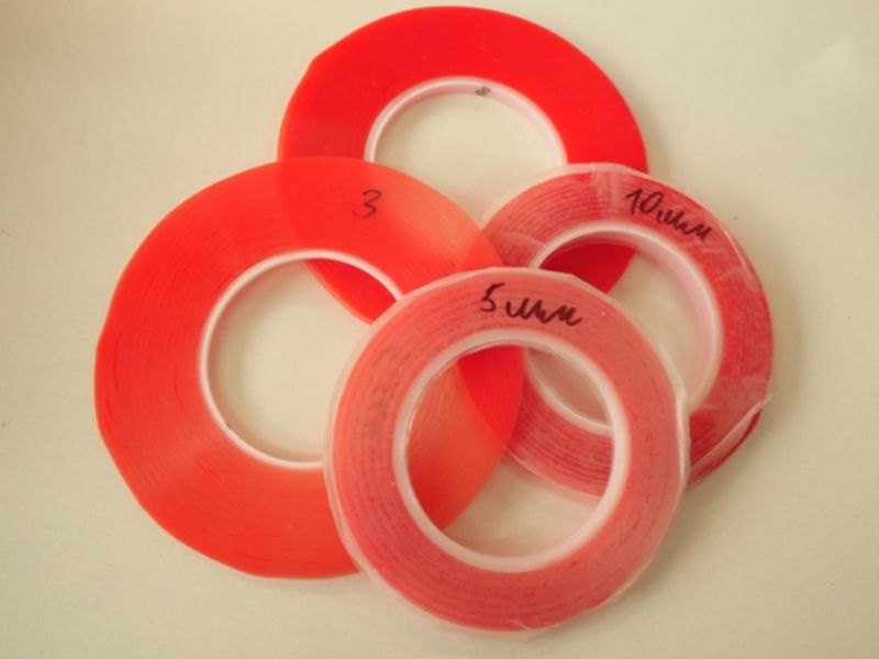 Двухсторонний скотч 3M прозрачный ширина 8 мм, длина 50м красный (М)