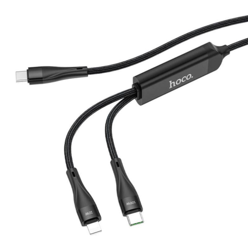 Cable 2 in 1 Type-C/Type-C+Type-C HOCO U102 3A 1.5m Black