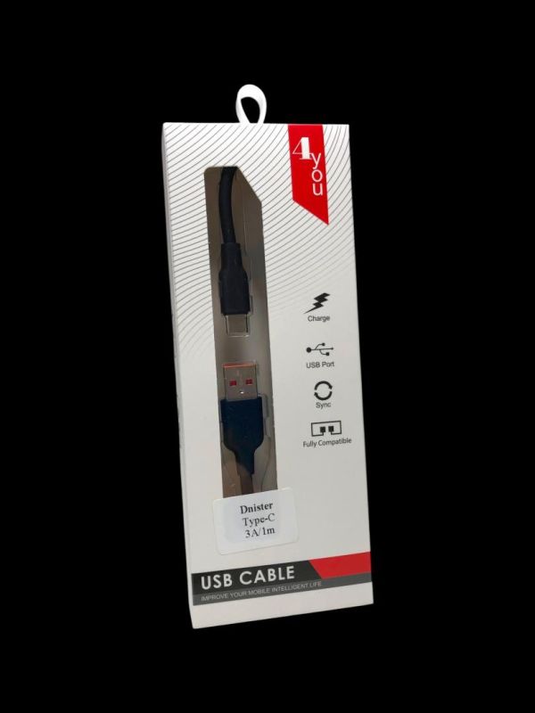 Usb-cable Type-C 4you Dnister black (3A, Silicon Perfect) - Универсальная упаковка