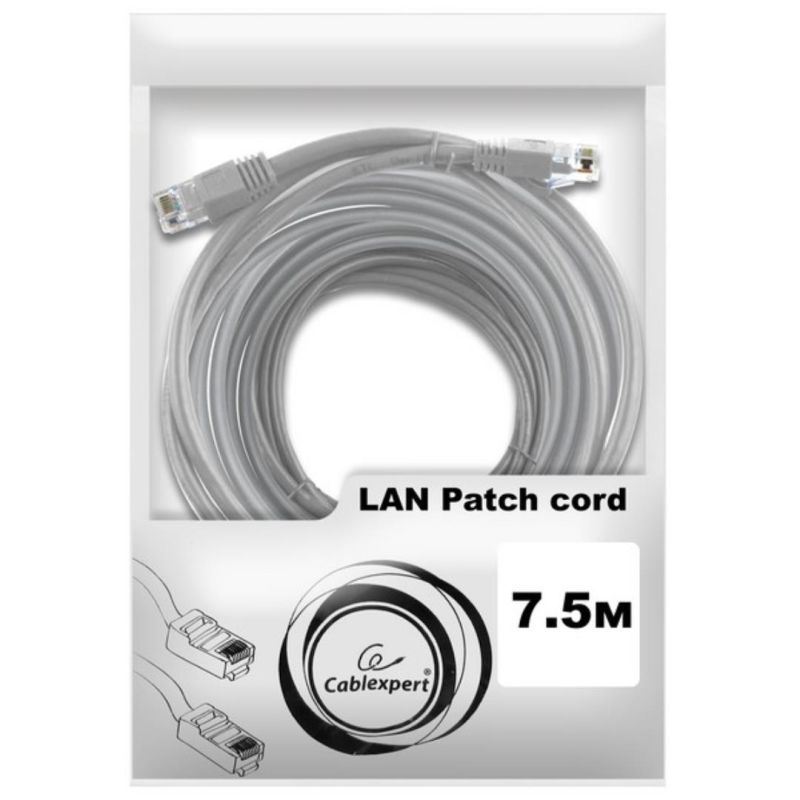 Кабель сетевой RJ45 7.5м Cablexpert PP12-7.5M, серый (витая пара)