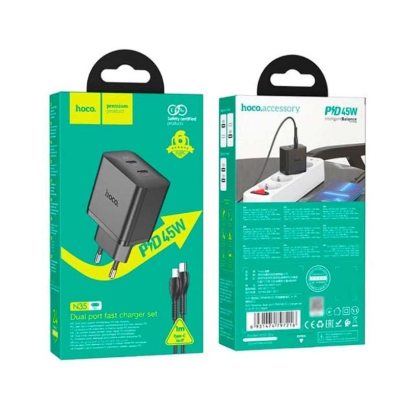 МЗП-Type-C HOCO N35 PD45W+QC3 (2Type-C) + кабель Type-C-Lightning Black