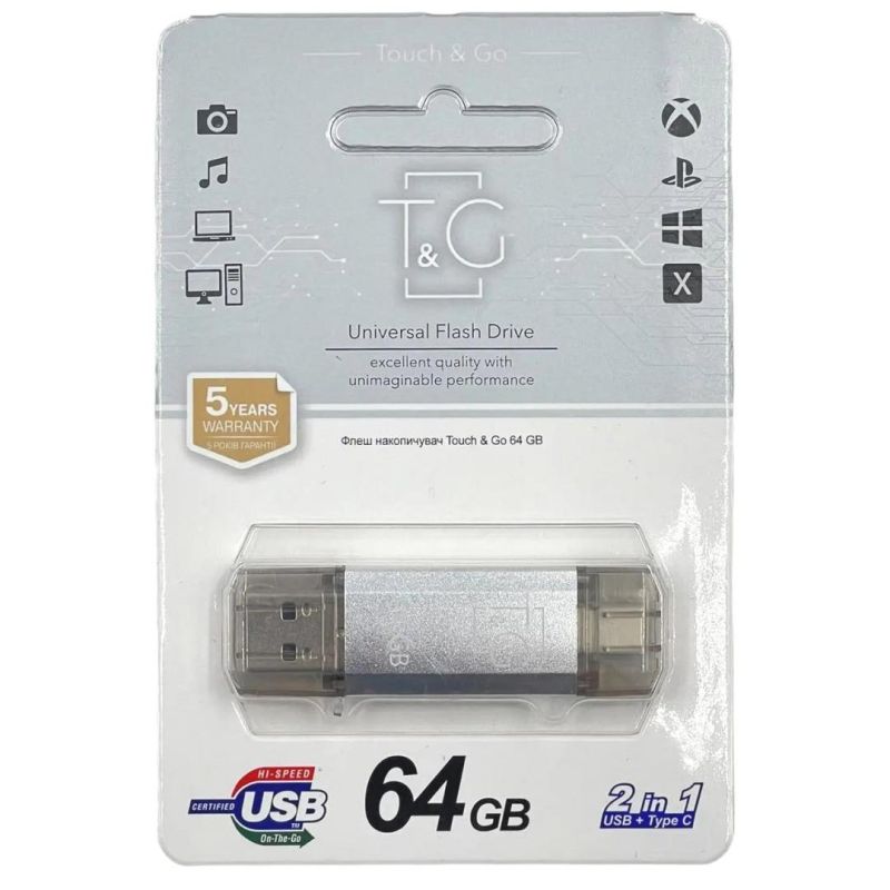 Usb 64Gb T&G 009 Star series (Type C 2.0) Silver