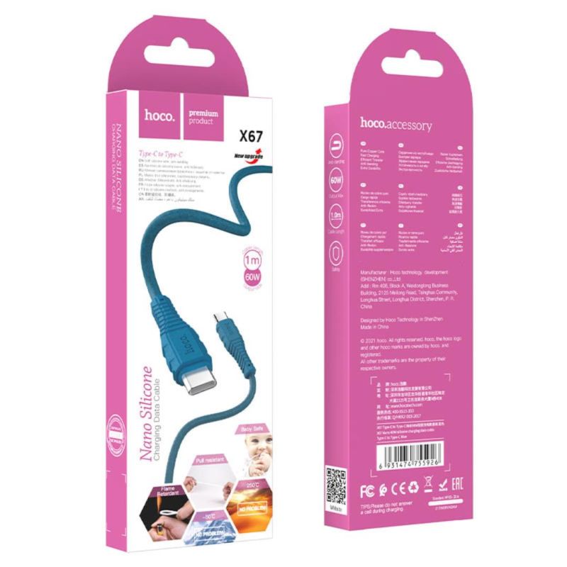 Cable Type-C/Type-C HOCO X67 60W 1m (круглий) Blue