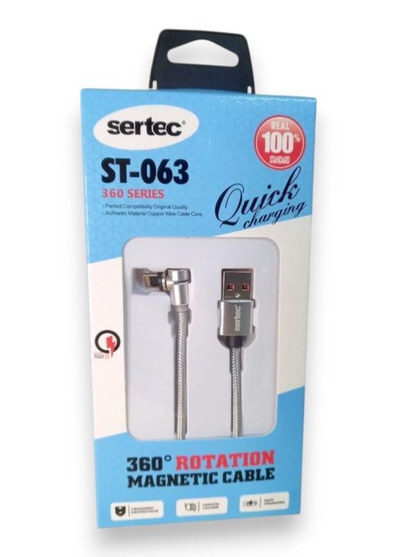 Usb-cable iPhone 5 Sertec ST-063 2.4A 1m ( Г-образний, метал.коннектор, круглий, Magnetic ) Grey