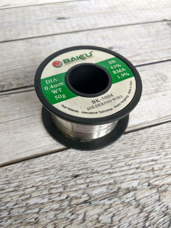 Припій котушка BAKU BK-5004 (0,4 мм, 30 гр, Sn 63%, Pb 35.1%, rma 1.9%) (M)