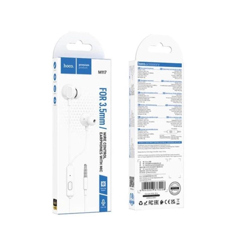 Гарнітура HOCO M117 (мікрофон, круглий шнур) White