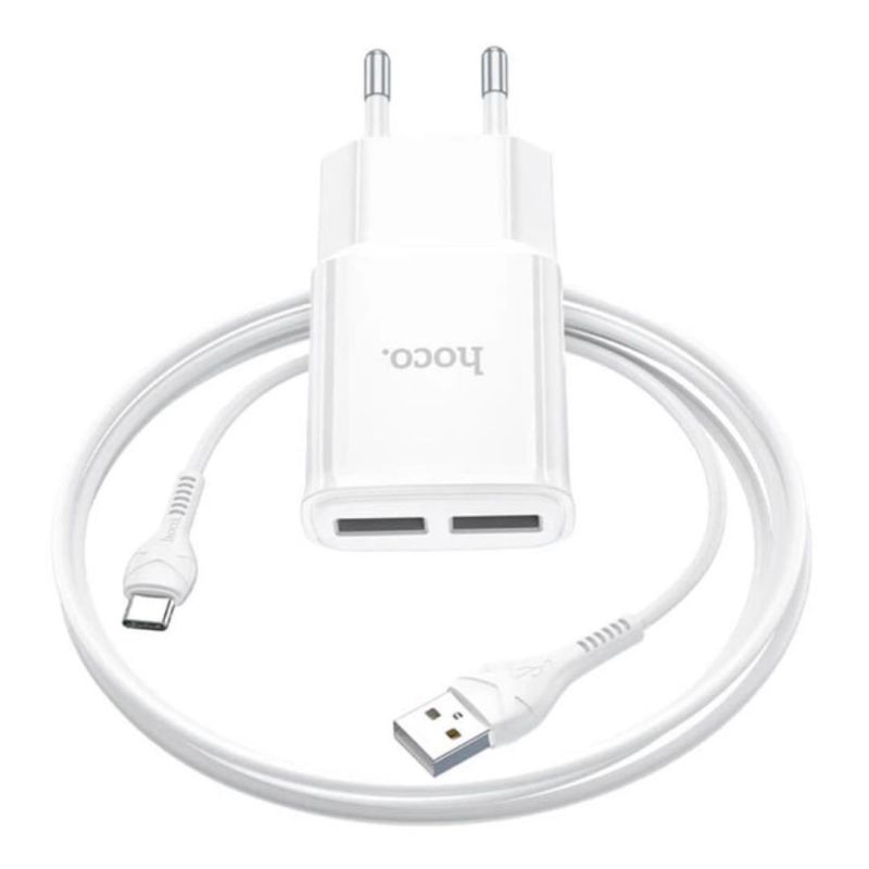 МЗП-USB HOCO C88A 2.4A 2 Usb + кабель Type-C White