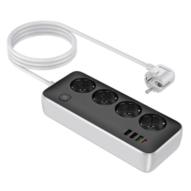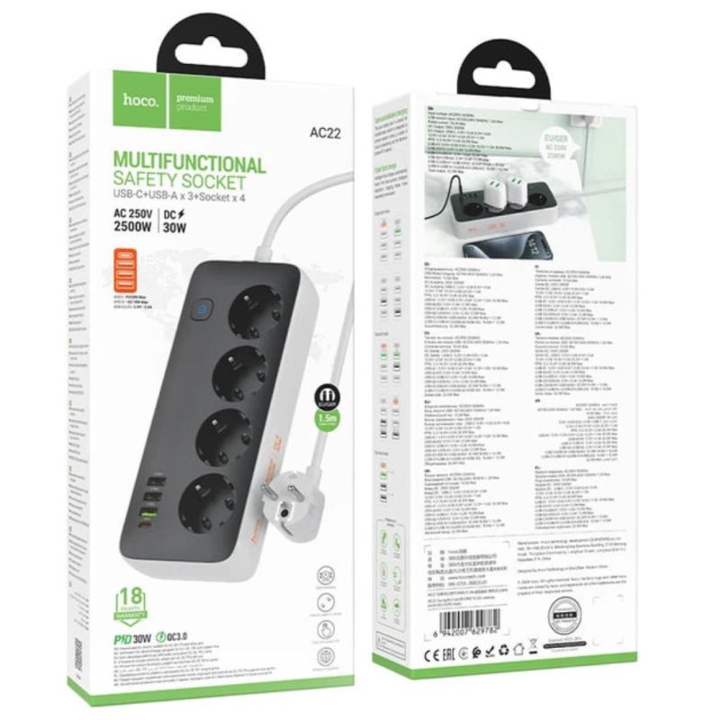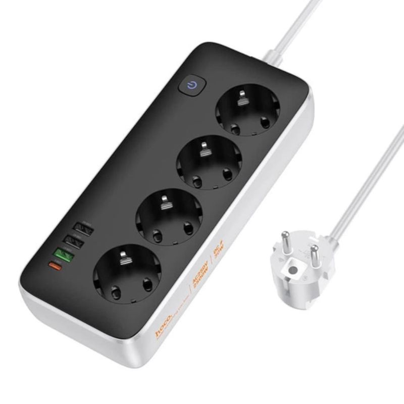 Подовжувач мережевий HOCO AC22 1.5m PD20W (3USB/1Type-C/4xSocket) Black