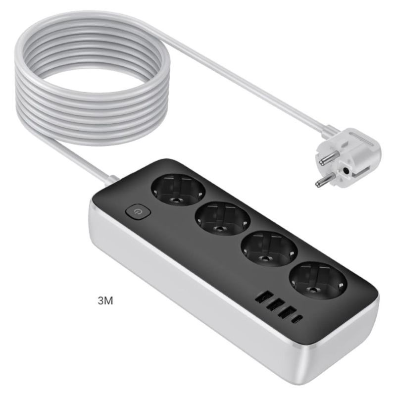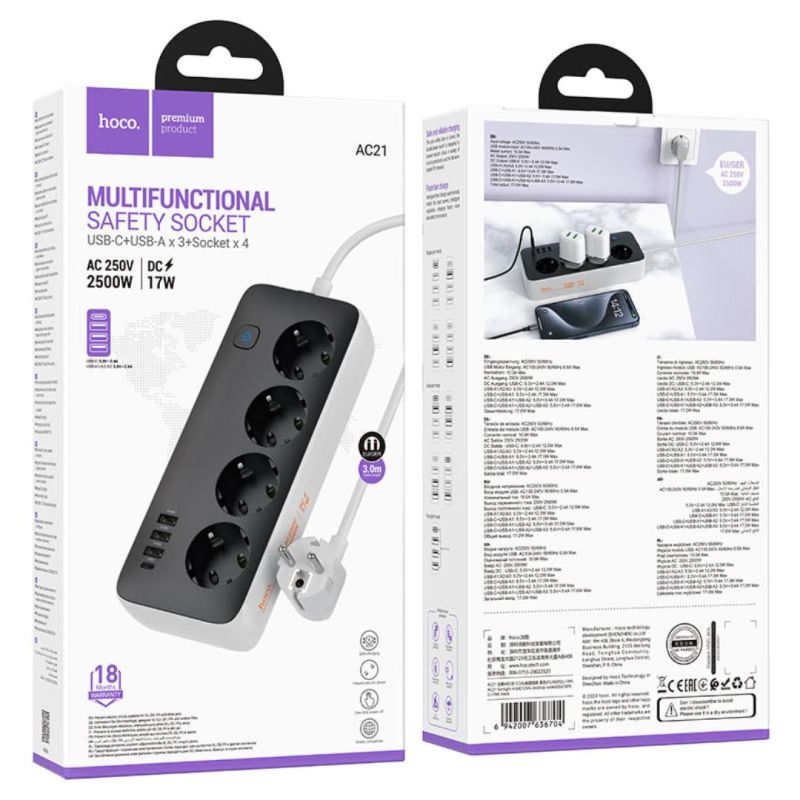Подовжувач мережевий HOCO AC21 3m (3USB/1 Type-C/4xSocket) Black