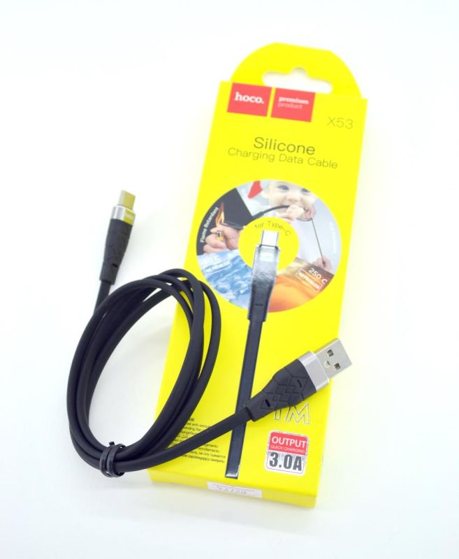 Usb-cable Type-C HOCO X53 "Angel" 3А 1m (плоский, метал.коннект) Black