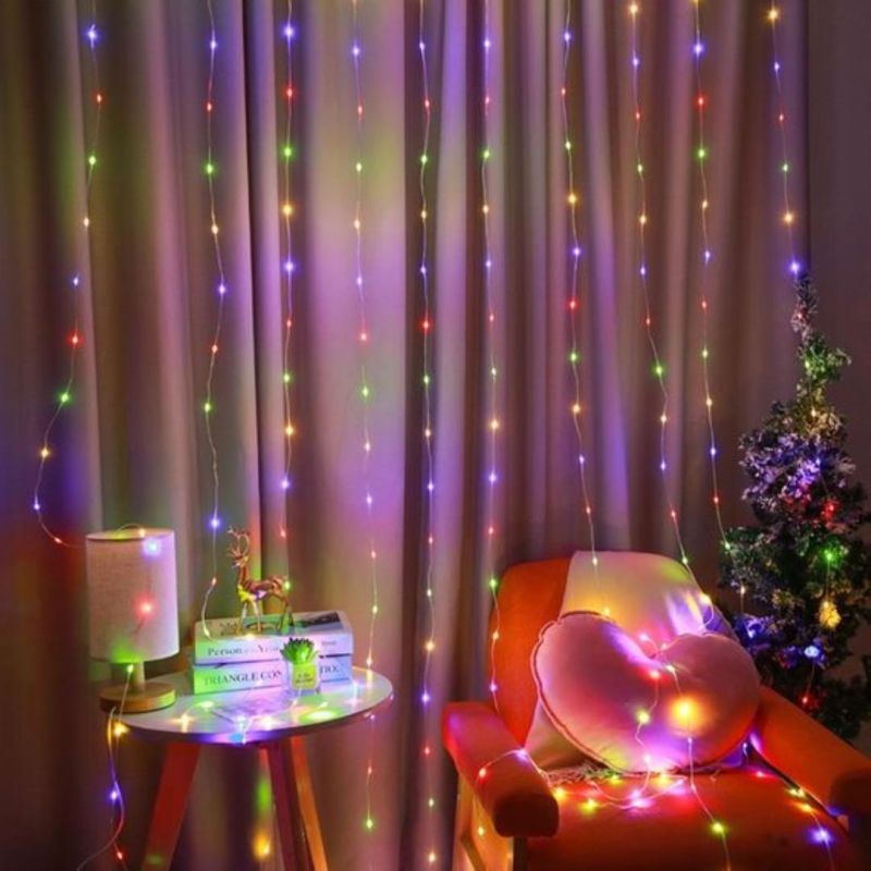 Гірлянда USB штора, мідна нитка, RGB, 3x3 м, 8 режимів, з пультом (M) - Ціна Тижня!