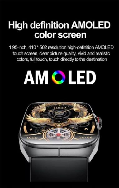 - Экран: изогнутый 1.95" AMOLED, разрешение 410*502, сенсорный экран на весь экран