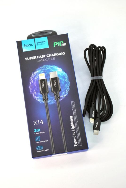 Cable Type-C/iPhone 5 HOCO X14 PD20W 2m (круглый,тканевый,метал.коннект) Black