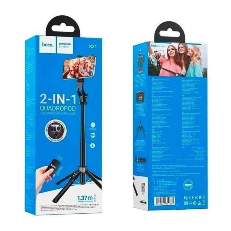 Держатель выдвижной для Selfi Monopod 2 in 1 HOCO K21 Black