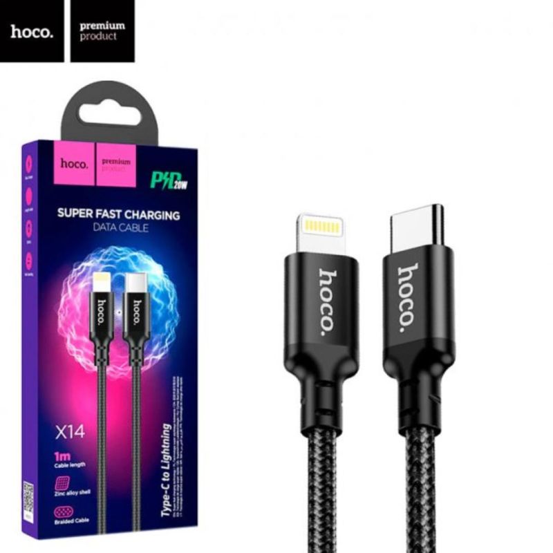 Cable Type-C/iPhone 5 HOCO X14 PD20W 1m (круглый,тканевый,метал.коннект) Black