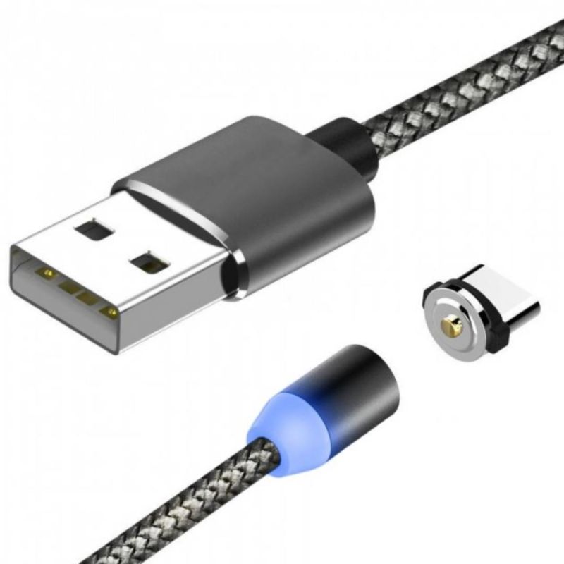 Usb-cable Type-C Aspor-360Pro magnetic 2.4A 1m (круглый,ткань + пластик,метал.коннек) Black