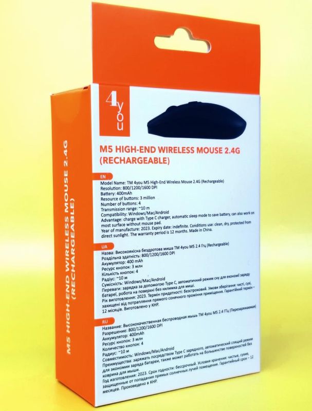 Мышь беспроводная 4you M5 black (АКБ, 2.4G+BT, Type C, 6кн, 12мес гарантия )