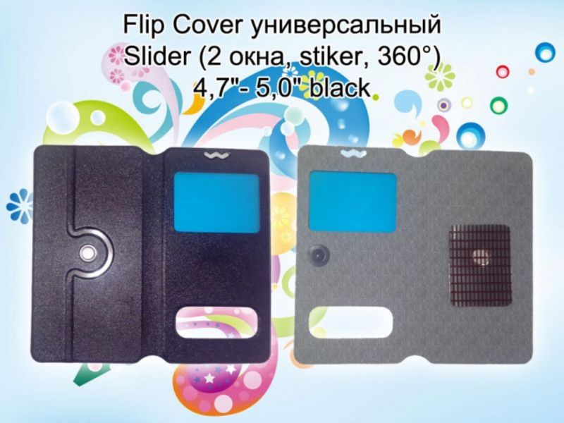 Чехол-книжка Stiker (2 окна, stiker, 360°) 4,7"- 5,0" black универсальная "Акционная цена"