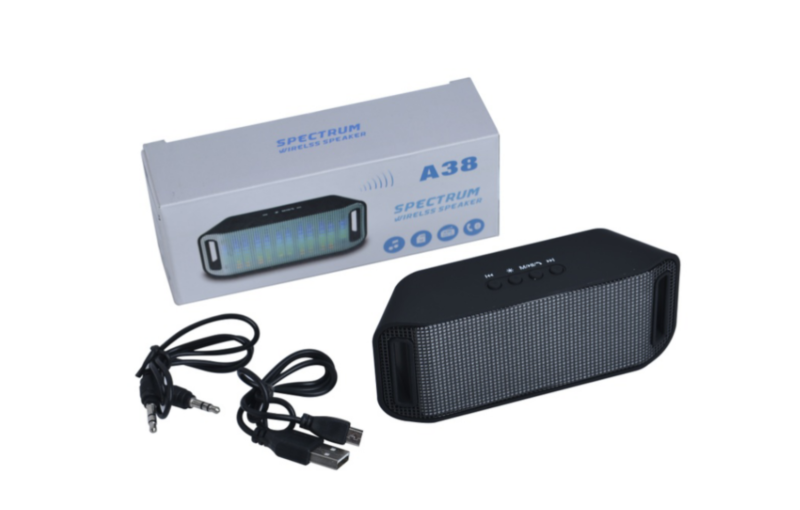 Портативная колонка A38 (Светомузыка, Bluetooth+USB+micro SD, FM, AUX, soft touch) black