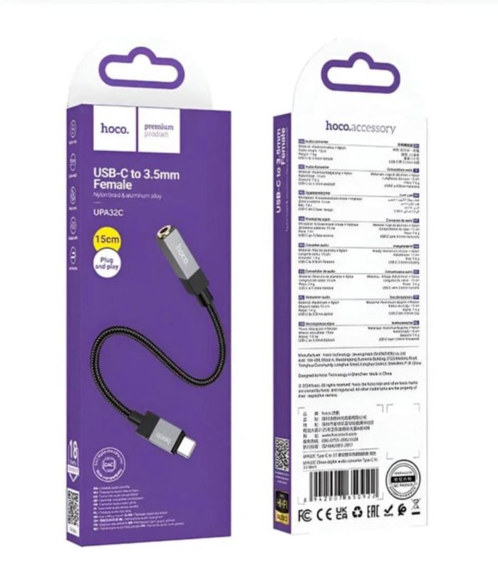 Переходник HOCO UPA32C Type-C - Jack 3.5 Black