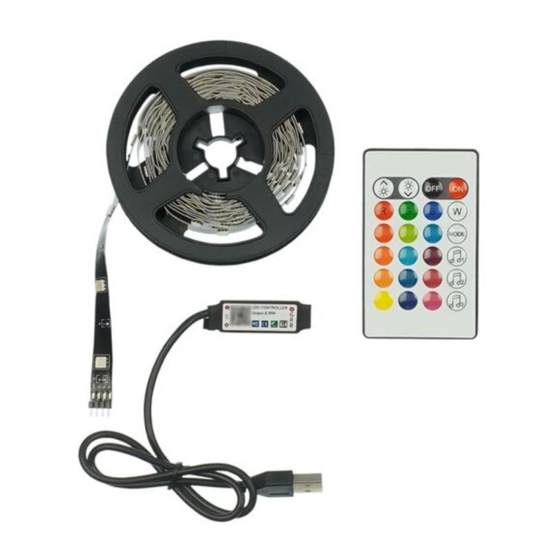 LED лента USB RGB 5V, IP 20, 10м, с пультом, на самоклейке(М)