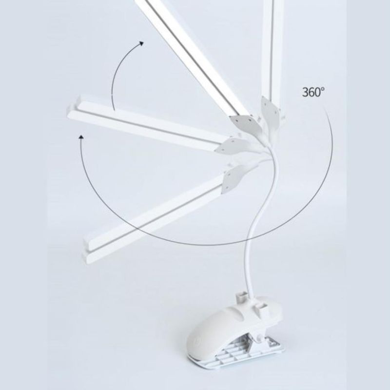 LED настольная USB лампа гибкая, двойная, 1 аккумулятор + прищепкой белая (М) - Цена Недели!