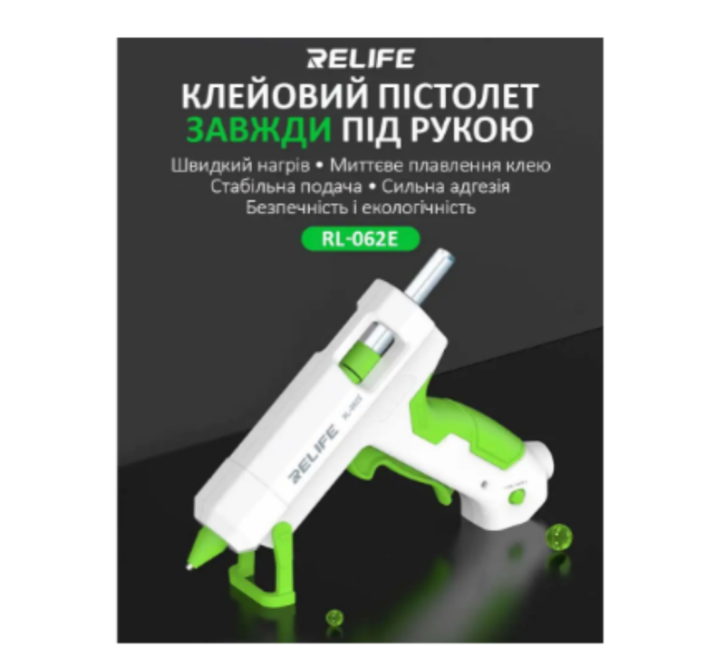 Пистолет термокл Relife RL-062E со стерж 10 шт (220V, 25W,сопло d=2mm,клей d=7mm) (М) - Цена Недели!