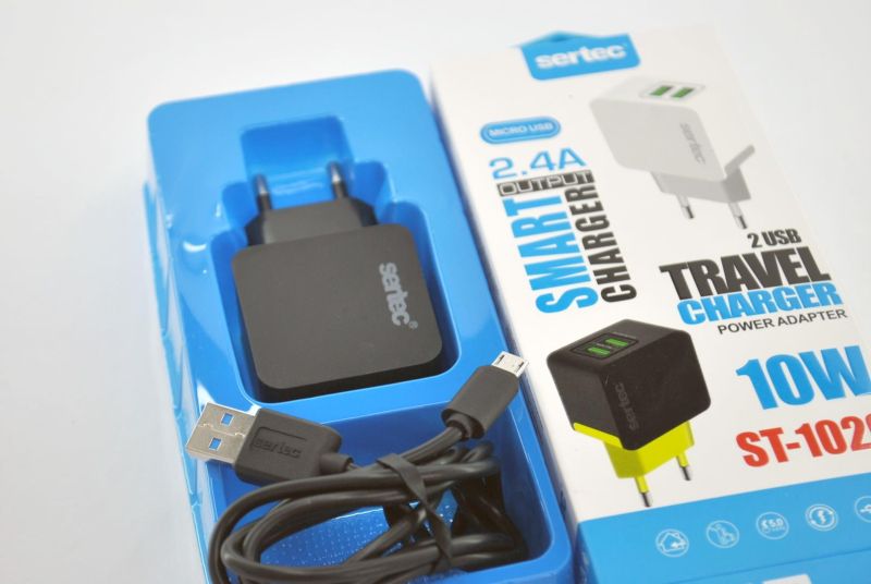 СЗУ-USB Sertec ST-1020 10W/2400 mAh 2 Usb + кабель Micro Usb Black