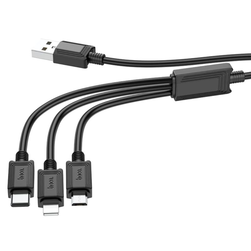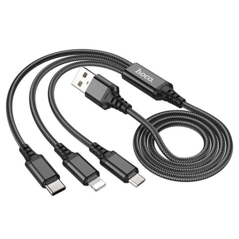 Usb-cable 3 in1 Micro USB/iPhone5/Type-C HOCO X74 2A 1m (круглый) Black