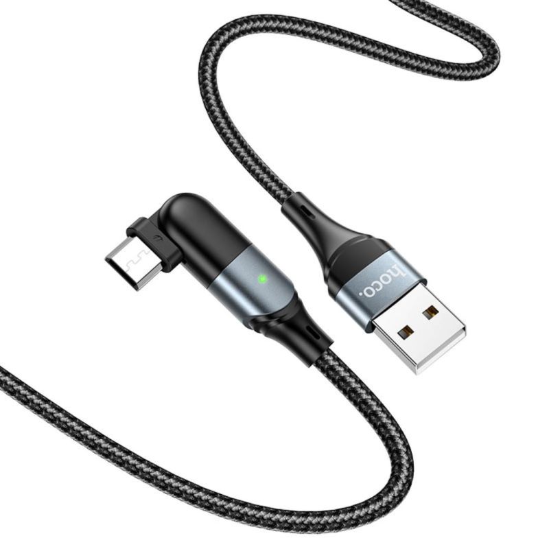 Usb-cable Micro USB HOCO U100 2.4A 1.2m (круглый,тканевый,метал.коннект,Г-образный) Black/grey