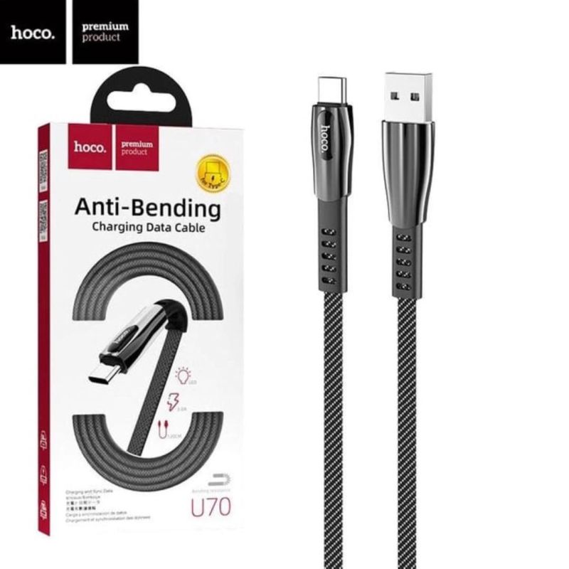 Usb-cable Type-C HOCO U74 Grand 3A 1.2m (метал.коннект,плоский,тканевый) Black