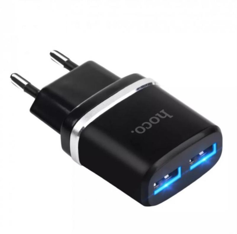 МЗП-USB HOCO C12 Smart 2.4A 2 Usb + кабель iPhone 5 Black