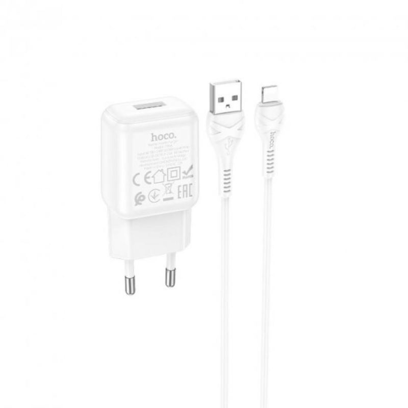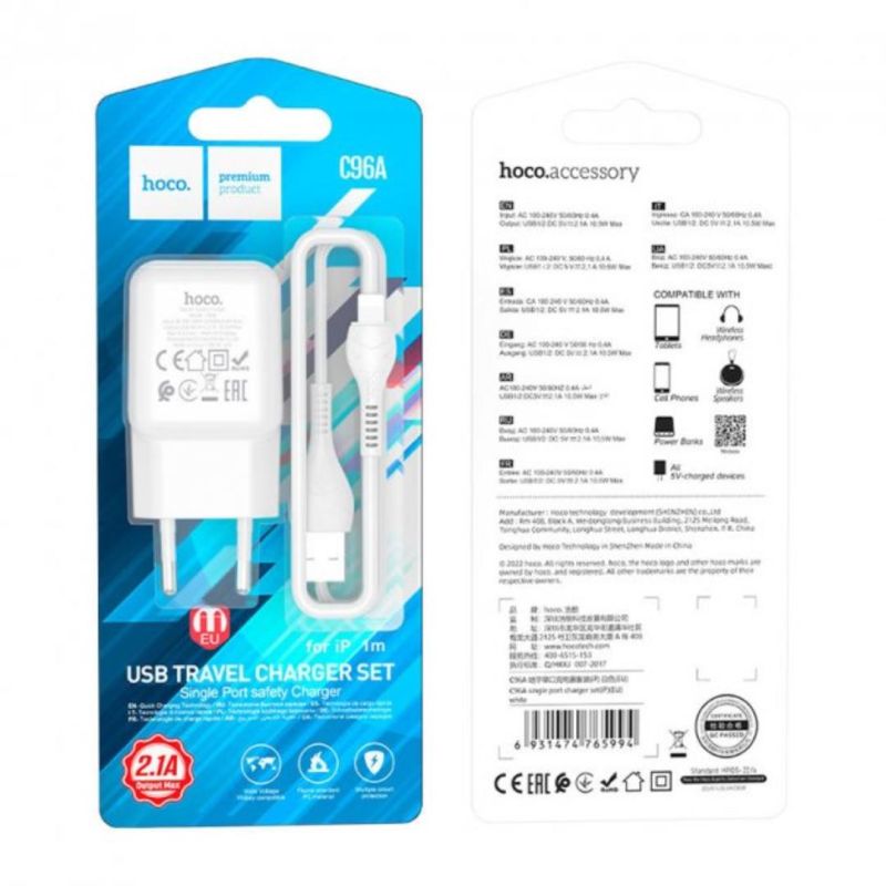 МЗП-USB HOCO C96A 2.1A 1 Usb + кабель iPhone 5 ( блістер ) White